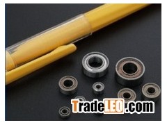 Miniature ball bearings with flanged O.D. to facilitate mounting. Sizes range from 1mm / 0.0400"